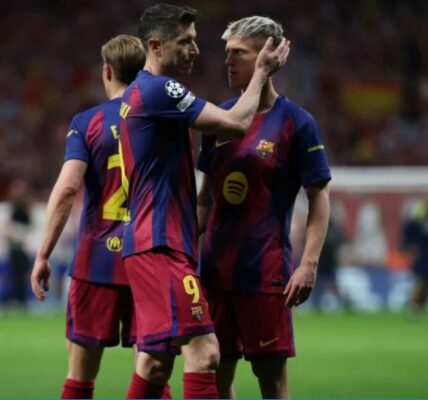 🔸 El delantero del Barcelona Robert Lewandowski y el centrocampista Dani Olmo, se mostraron decepcionados tras ser eliminados en cuartos de final de la Champions por el Atlético de Madrid. #DEPORTES | El sueño de la Liga de Campeones del…
