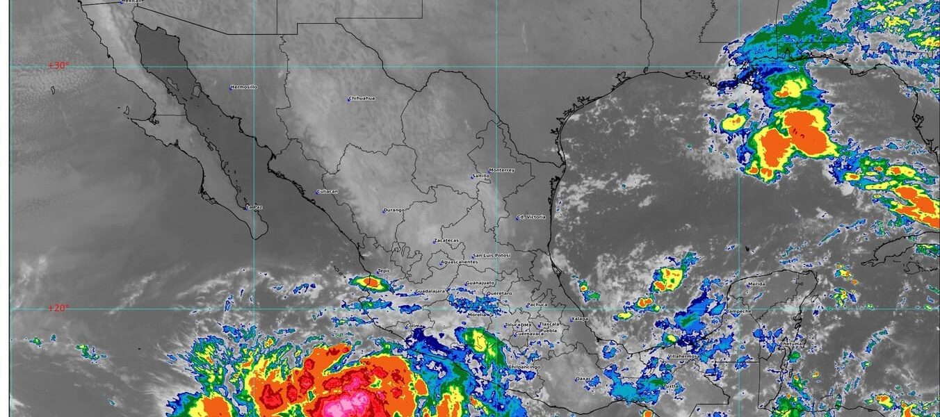 Su amplia circulación ocasionará lluvias intensas en Michoacán y Guerrero, muy fuertes en Jalisco y Colima, así como vientos fuertes y oleaje elevado en las costas del Pacífico central mexicano.