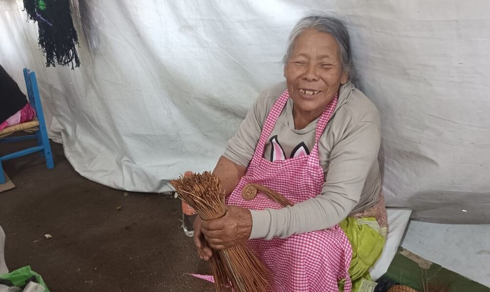 “Nosotros le decimos ocochal, artesanía de ocochal, allá en mi pueblo lo entendemos como artesanía de ocochal, pero ya aquí le dicen huihumo”, dice un poco divertida, y muestra los manojos ya listos para trabajar, y asegura que con cinco de esos se hace un buen frutero.