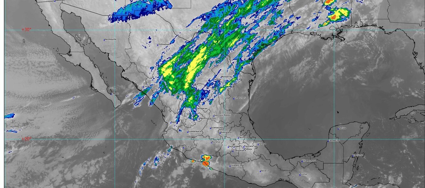 Simultáneamente, una vaguada en niveles medios y altos de la atmósfera permanecerá en el noroeste del territorio nacional y en interacción con la corriente en chorro polar, mantendrán el descenso de temperatura y rachas de viento fuertes a muy fuertes en estados del noroeste y norte del país.