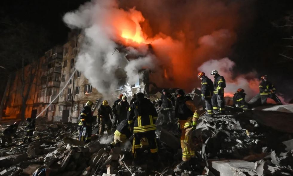 Uno de los ataques más devastadores ocurrió en la ciudad de Járkov, en el este de Ucrania, donde un misil impactó un edificio residencial de cinco pisos que quedó reducido a escombros.