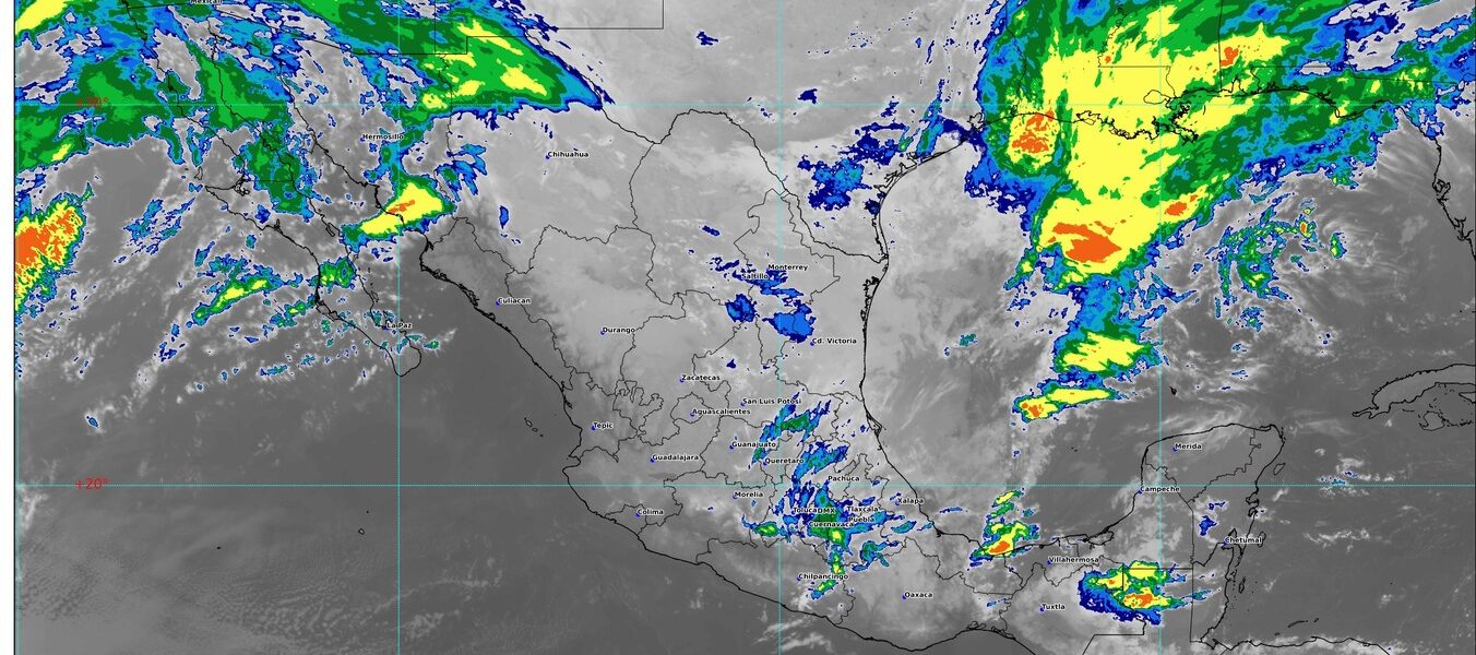 Por otra parte, un canal de baja presión sobre el occidente y sur del país, en combinación con inestabilidad atmosférica y el ingreso de humedad de ambos océanos, generarán lluvias y chubascos con descargas eléctricas y posible caída de granizo en las regiones mencionadas, incluido el Valle de México.
